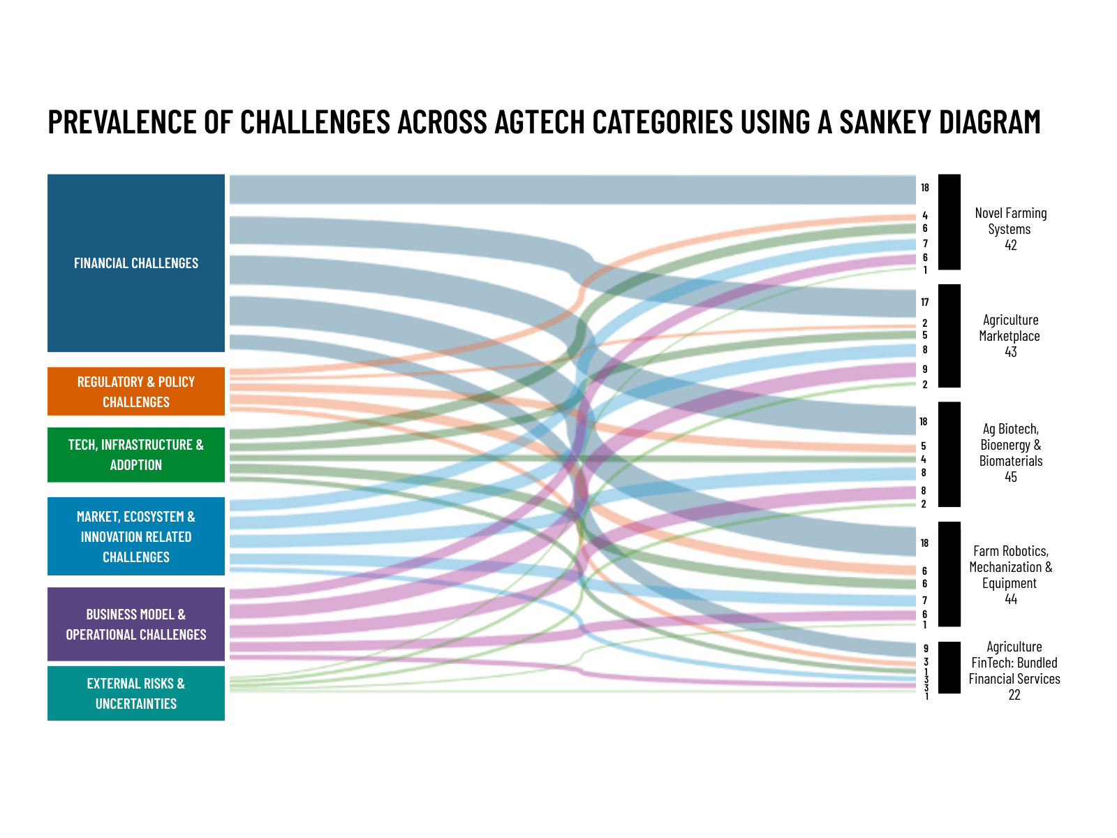 Figure 2: Type and number of challenges self-reported by AgTech firms of various categories.