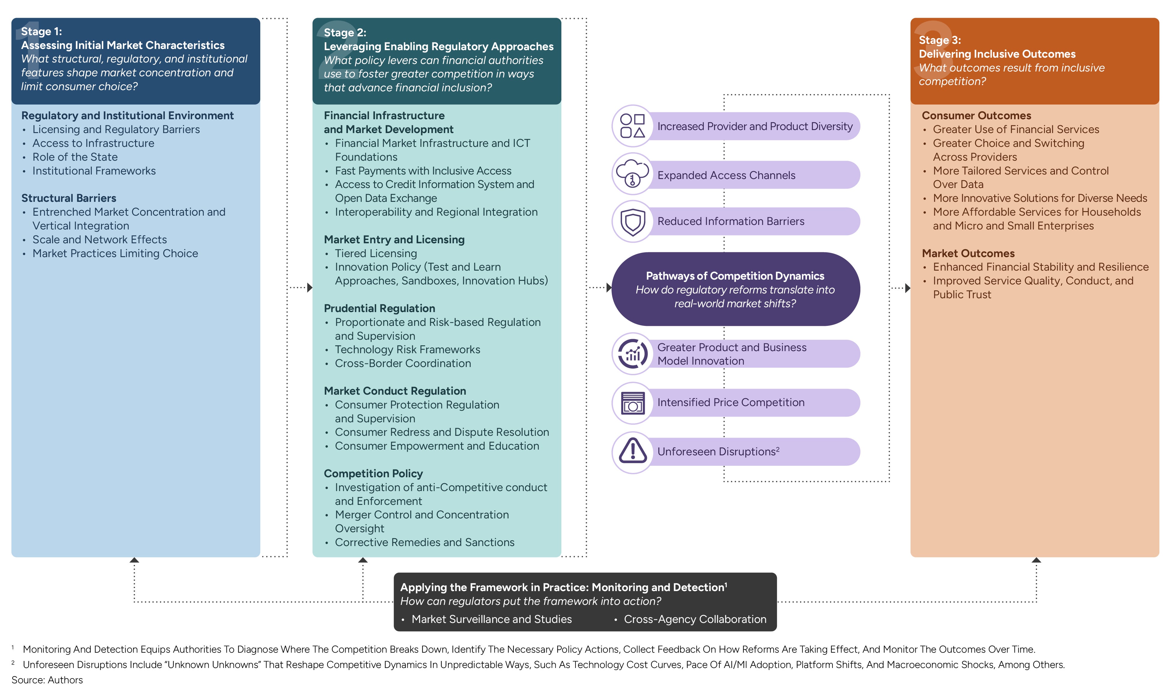 - Within the second stage, financial authorities can leverage enabling regulatory approaches across five domains—financial infrastructure, market entry and licensing, prudential regulation, market conduct regulation, and competition policy. These approaches form a flexible toolkit to foster healthy competition without undermining stability, integrity, and/or consumer protection. As regulatory reforms take hold, they activate five pathways of competition dynamics, including diversity in providers and products; expanded access channels; reduced information barriers; innovation; and price competition.